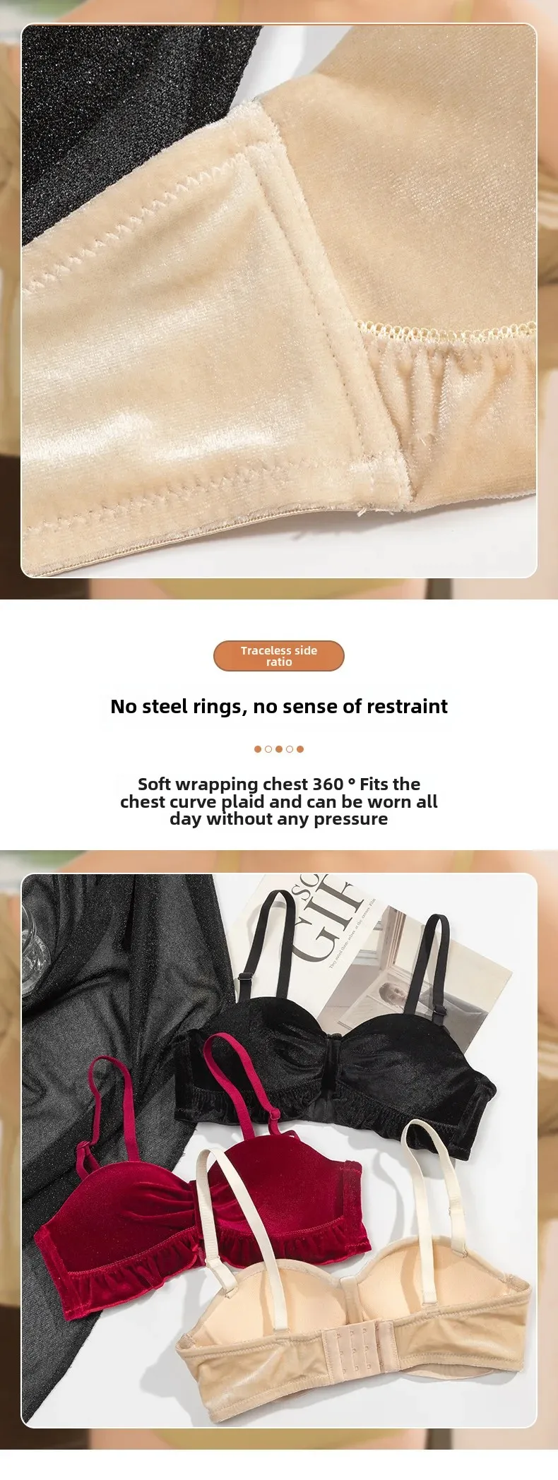 • Luxurious Velvet Style :This women’s bra boasts a luxurious velvet style, offering a soft and comfortable feel against the skin. It’s perfect for those chilly autumn and winter months.
