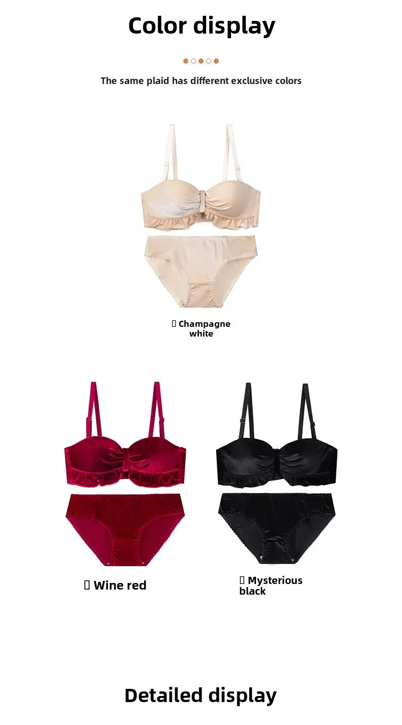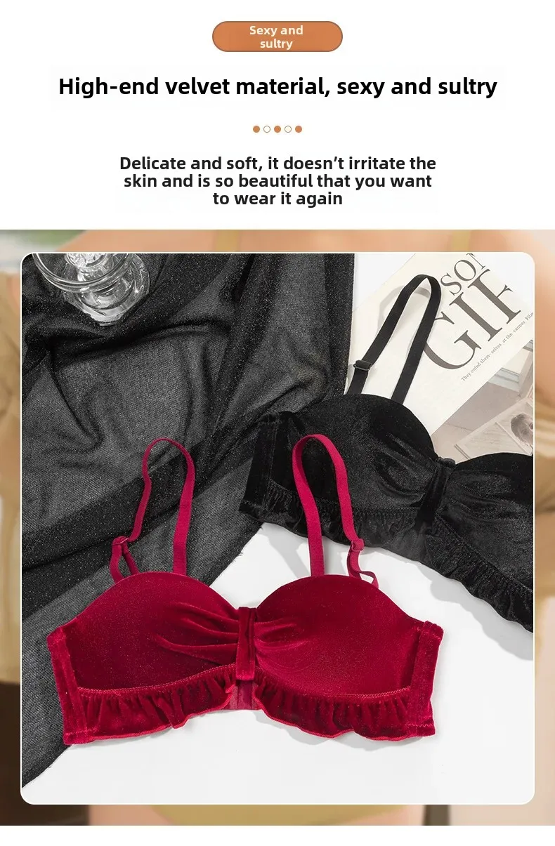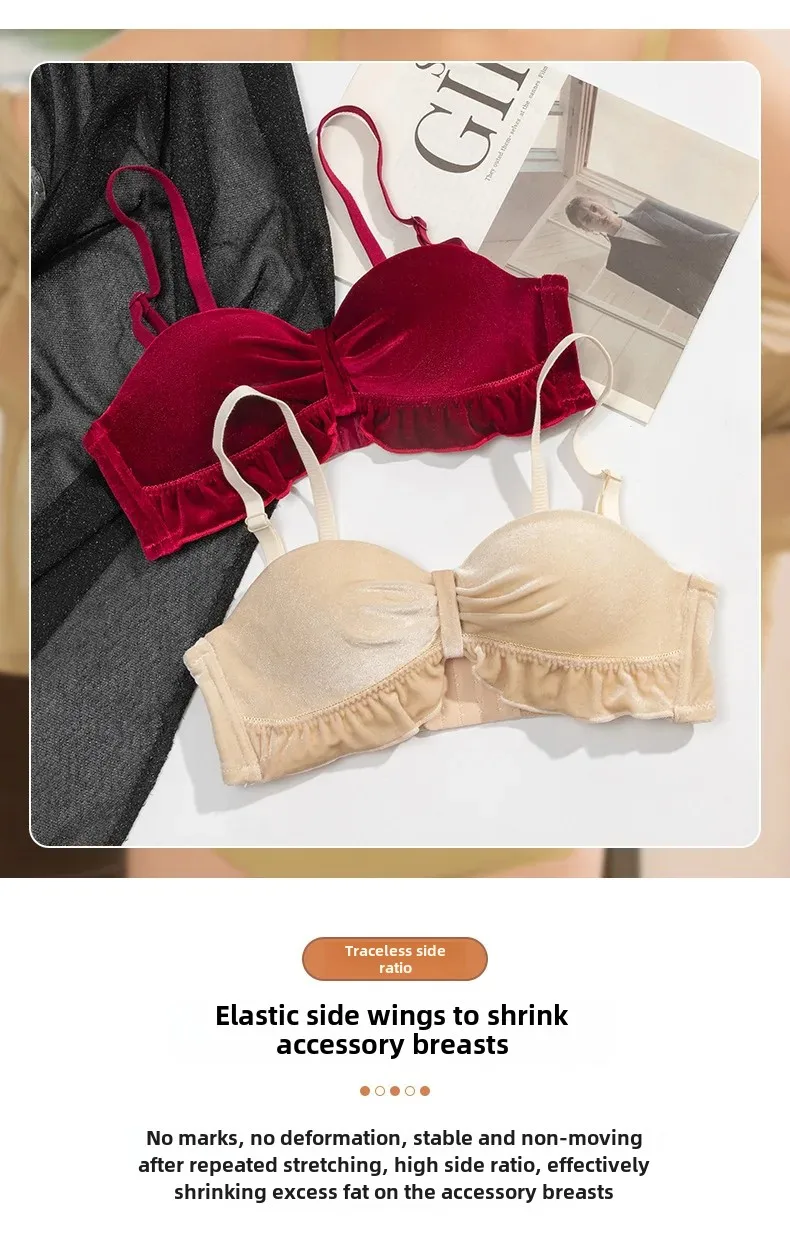 Autumn/winter Women’s Slightly Large Chest Wireless Bra Luxury Vintage Silk Velvet Gathered Push-up Bra Side Breast Collection